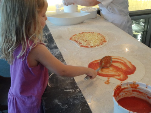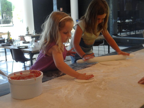 Entretanto, aproveitámos a babysitter do hotel e as miúdas estiveram a fazer brincadeiras várias. Uma das preferidas foi esta: fazer pizzas a sério.