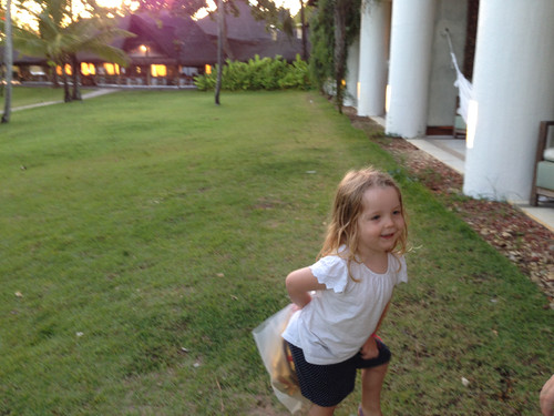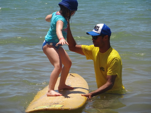 Chama-se Club Careta Careta e tem atividades para as crianças a partir dos 4 anos entre as 10.00 e as 12.00, entre as 15.00 e as 18.00, entre as 19.00 (jantar) e as 22.00. Deve ser a principal razão por que o resort onde ficámos foi considerado o melhor sítio do género para crianças de toda a América Latina. Não sei de quem é a classificação, mas posso dizer que é mesmo-mesmo espectacular. Na foto, a Madalena está numa aula de surf. Em outros dias, fez uma visita a uma floresta, visitou a casa das tartarugas e comeu sorvete na vila. O clube tem várias piscinas de várias alturas (mas sempre com pé), um campo de jogos, sombra... À noite, a pequenada ia jantar com os "tios" (monitores) e ainda via um filme e fazia mais uns jogos.